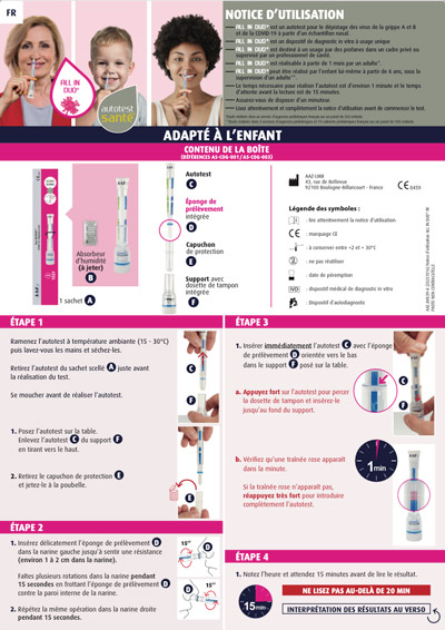 ALL IN DUO® est un autotest uniquement destiné au dépistage du virus de la Grippe A et de la Grippe B de la COVID-19 pour un usage privé, il ne peut en aucun cas être utilisé pour un autre diagnostic ou un autre usage.